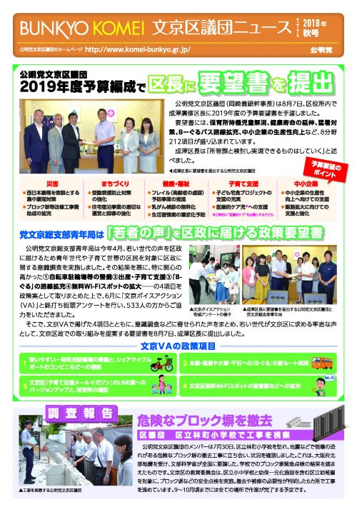 TOP > トピックス > 区議団ニュース秋号を発行しました
